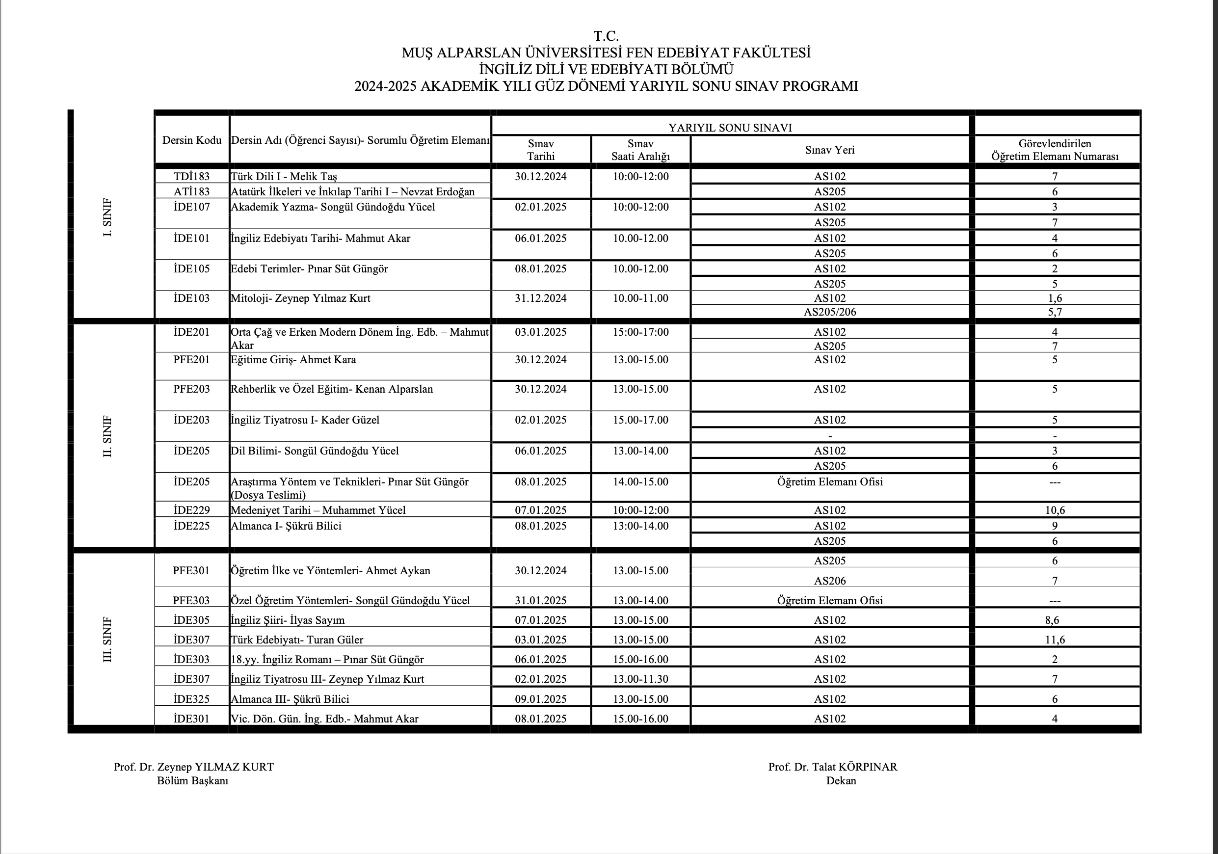 2024-2025 GÜZ DÖNEMİ YARILYIL SONU SINAV PROGRAMI